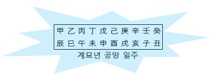 위의 일주들은 *인과 *묘년에 공망에 해당하는 일주들입니다.